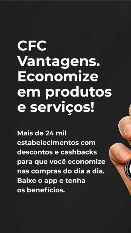 A CFC Vantagens te dá descontos em compras online e em lojas físicas de todo o Brasil. Com o app do nosso Clube de Vantagens, você acessa as principais marcas do país e utiliza o desconto na hora de pagar, de maneira rápida e sem custo.