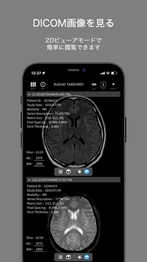 MR、CT、X線、超音波などで撮影されたDICOM画像をご自身の端末で閲覧できます。