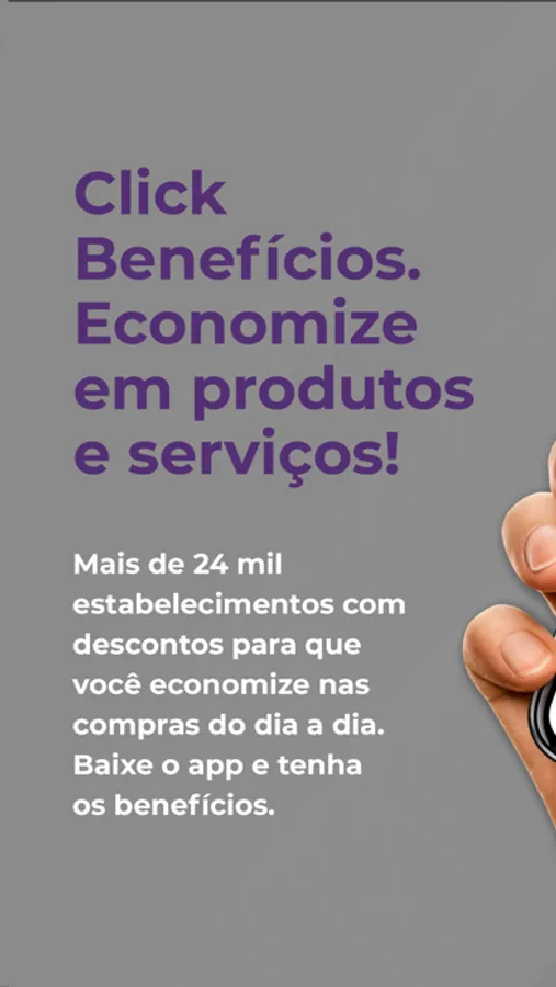 A Click Benefícios te dá descontos em compras online e em lojas físicas de todo o Brasil. Com o app do nosso Clube de Vantagens, você acessa as principais marcas do país e utiliza o desconto na hora de pagar, de maneira rápida e sem custo.