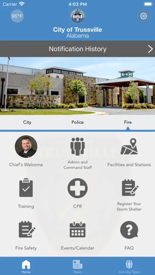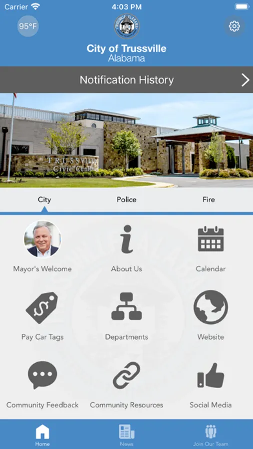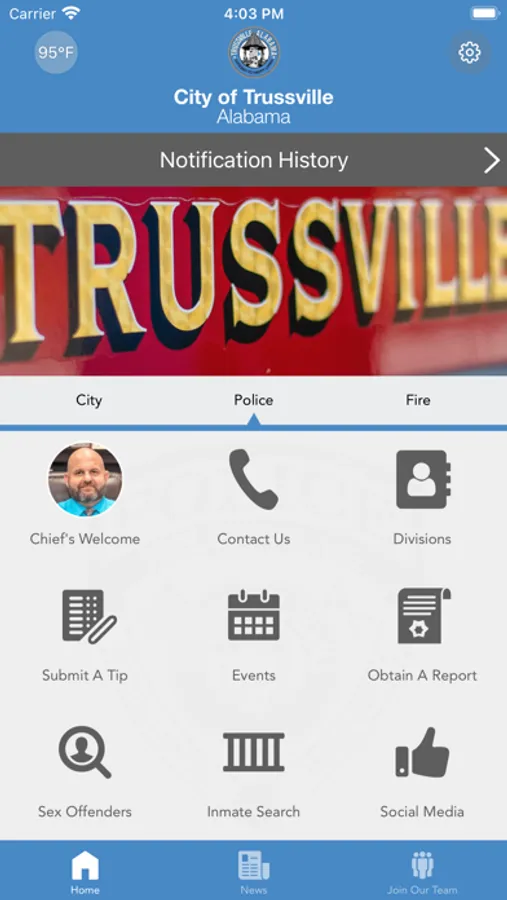 The City of Trussville AL mobile application is an interactive app which will help improve our communication with the citizens of Trussville and surrounding area. The purpose of this app is to improve our ability to communicate with our citizens Information which will include, but not be limited to provide Community Feedback, obtain a police report, learn more about fire safety, and more. Citizens may submit a crime tip directly through the app, as well as see and share social media posts. By empowering people through technology, the City of Trussville will be able to better serve our citizens.