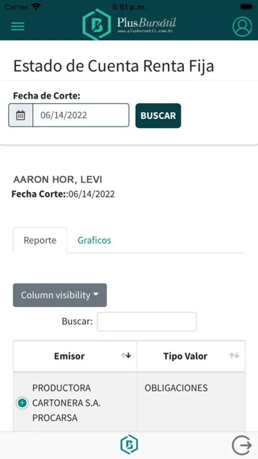 Consulte fácilmente todas sus transacciones realizadas a través de PLUSBURSATIL, y obtenga la información que contiene la liquidación de bolsa. Así también puede consultar su estado de cuenta de renta fija y el de renta variable, vencimientos próximos, etc., llevando así un control adecuado de sus inversiones.