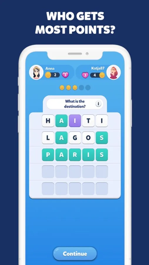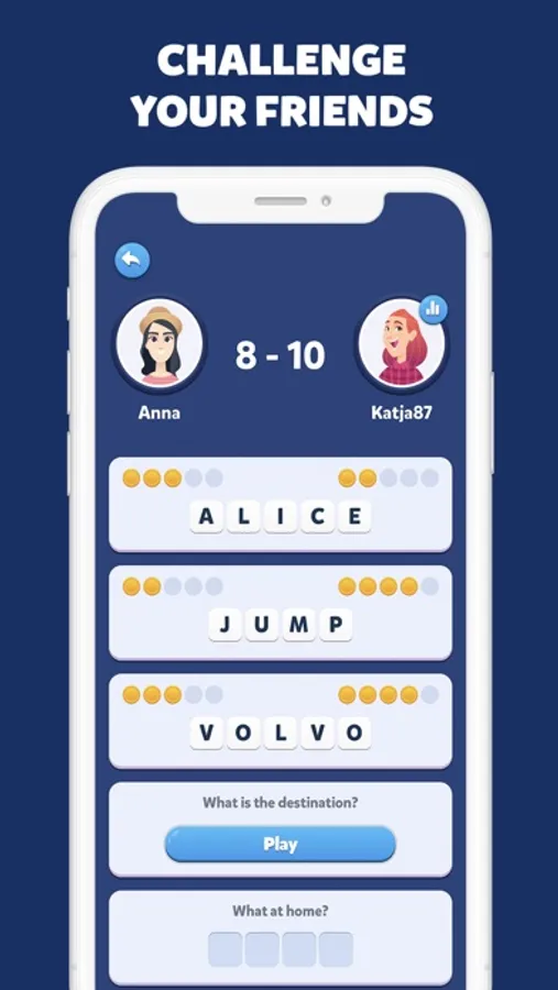 Figure out as many names and words as you can in a row. You can continue to play as long as your guess is correct - otherwise you will lose your collected points and have to start over.