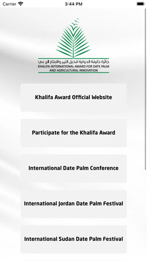 Main features for public users in the app is display details and up to date info about Khalifa International Award for Date Palm and Agricultural Innovation and display books to support scientific research in the development of the agricultural sector and date palm using global expertise for finding the best means for improvement of the real condition of agricultural innovation and date palm.