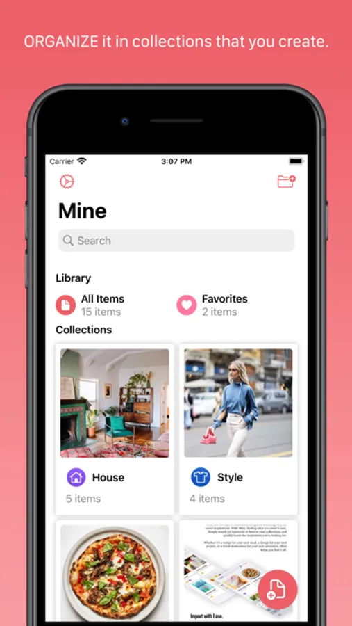 With MINE, you can see your inspirations come to life. Save anything and everything with ease, from recipes and DYI projects, to fashion and design inspiration and travel aspirations, and watch as they transform into beautiful thumbnails. Tag and organize your saves into collections for easy access anytime, anywhere.