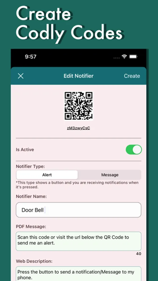 Codly App Allows you to create QR codes in order to share them to start receiving notifications or messages from anybody without sharing your personal data.