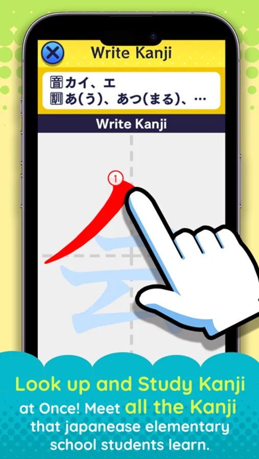 Our app is designed to help you learn Kanji through stroke-order learning, reading practice, and writing practice.