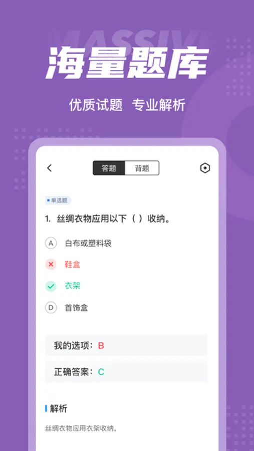 整理收纳师考试聚题库是一款针对整理收纳师考试的应用,主要功能特点包含: