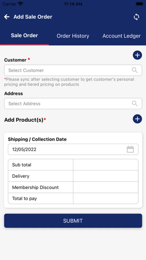 • App gives the sales reps customer’s account ledger, their payment history and prices and discounts linked to their account.