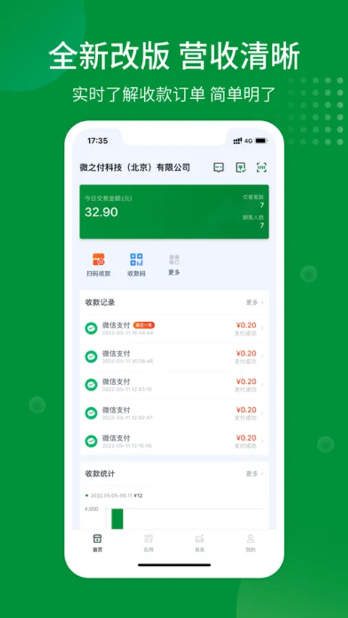 【账单】查询交易订单状态,多维度分析收款情况,每日营收一目了然,实时掌控自己的经营状况。