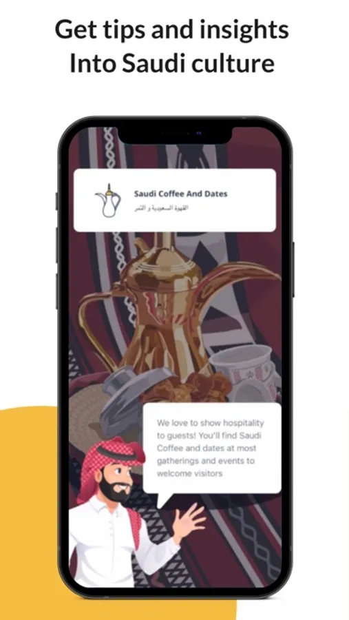 As you venture through the sessions, you will earn golden dates as a reward for your efforts. These can be cashed in at the souq for unique culture cards on interesting cultural topics such as Saudi coffee and dates, a cultural staple in society.