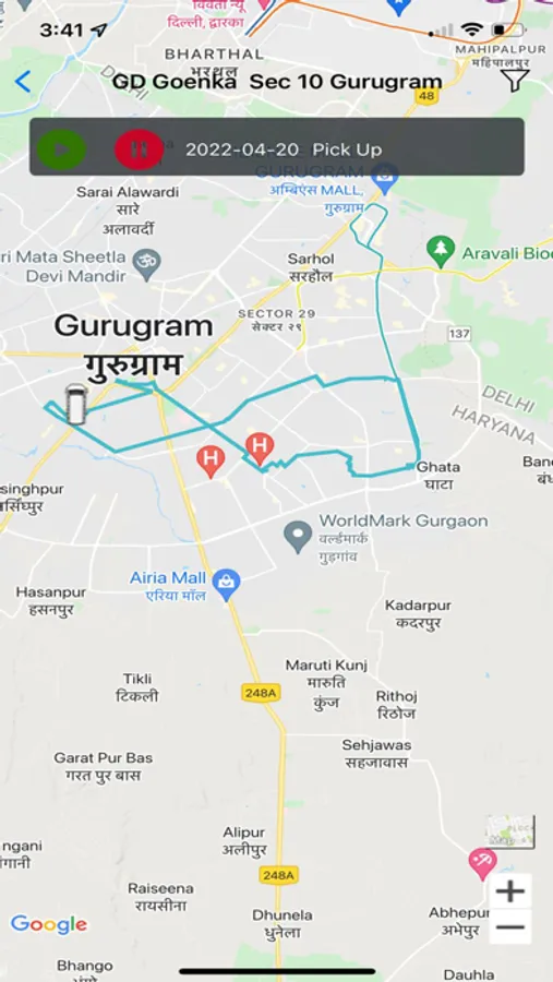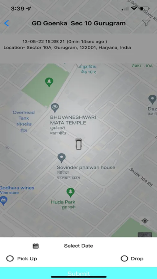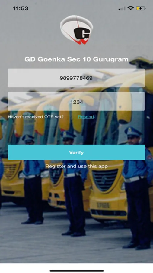 GD Goenka Sec 10 Gurugram is a School app for tracking School bus used by parents. Parents will track their child's bus. After login , they will enter OTP and see their child's name in list .They will click on the list and see the position of bus in next screen where map is showing . They will choose the filter and if they select drop and pick up they will see the complete track of bus.