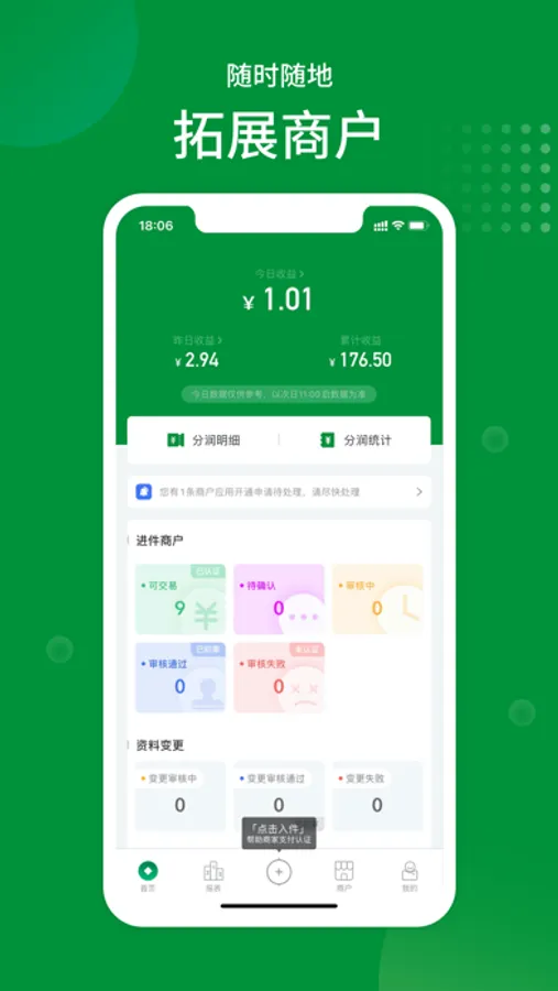 汇渔收款是一款为业务员提供移动签约商户管理的产品,帮助业务员、合伙人快速签约商户,提高签约效率。
