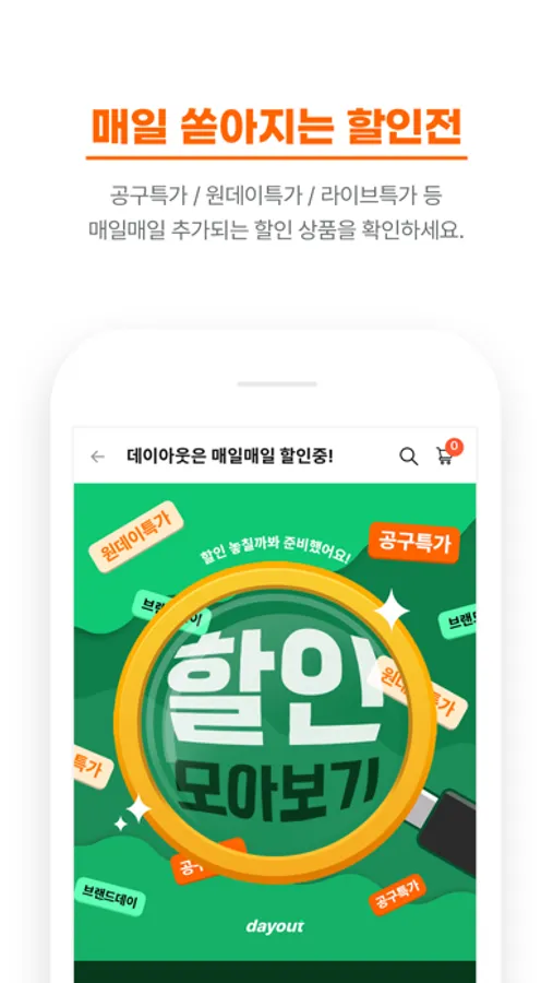 [쇼핑의 미덕은 할인! 매일매일 쏟아지는 데이아웃특가!]