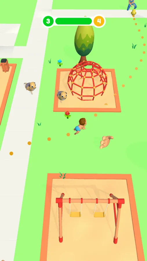 Be careful and look for potential dangers that could threaten the baby. Unleashed dogs, rogue vehicles, and kidnappers are all possible threats.