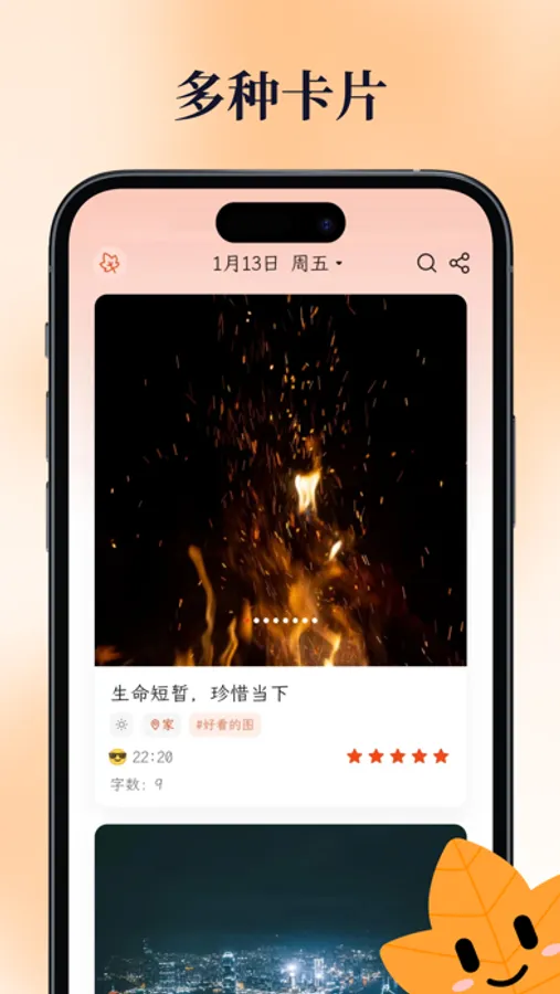 所以本软件借叶子来寓意人生中的点点滴滴,每当你写下一篇日记,便是或摘下或拾起了一片你认为值得珍藏的“叶子”,把它藏在了一叶日记中,待到日后回顾时,每一片叶子上的纹路都会告诉你往日那或喜或忧、或酸或苦的点滴瞬间与心情......