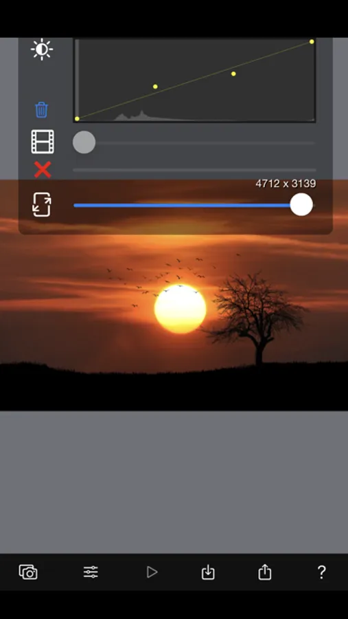 ■ Free control of light and dark of photos and videos by touch operation on the light and dark graph.