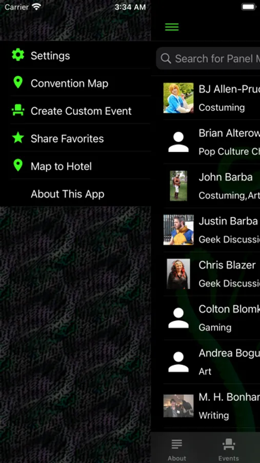 -Information on attending Professionals, Panelists, GMs, Guests of Honor, and staff