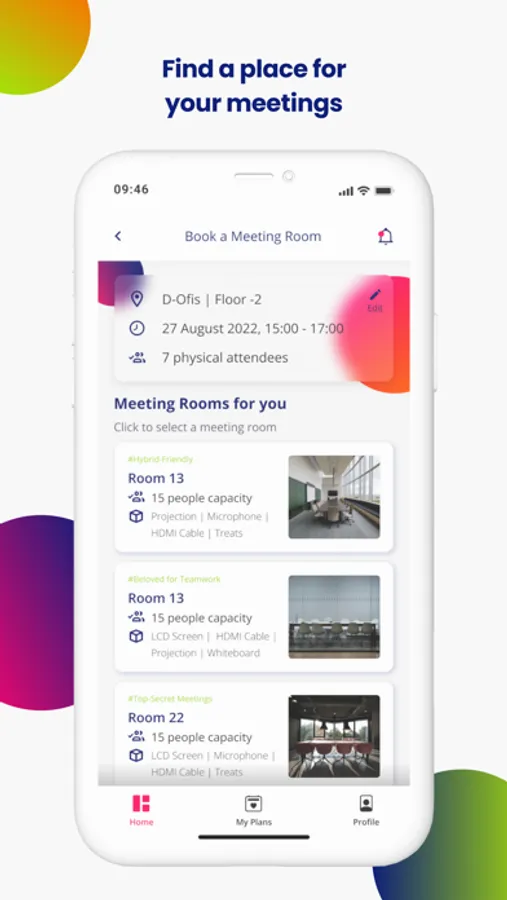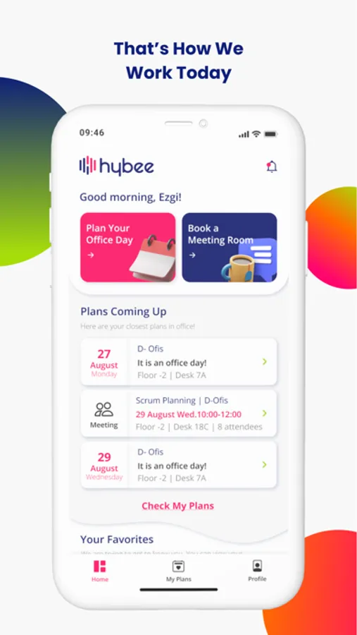 With Hybee hybrid work software, you can have a unique office experience. Our user-friendly app helps you to arrange your office day easily as you can reserve desks and meeting rooms.