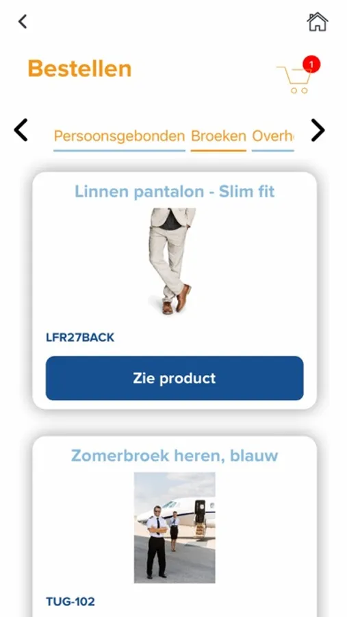 The range of work clothing and accessories in the app is determined by the employer. The employer agrees with supplier(s) which work clothing and accessories can be ordered in the app.