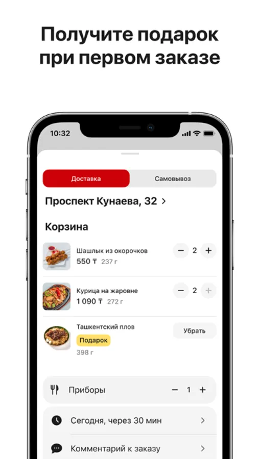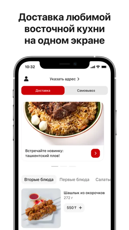 Вас ждут любимые горячие блюда, сочные шашлыки, ароматная тандырная самса с пылу с жару и многое другое. Установите приложение и заказывайте еду уже сейчас.