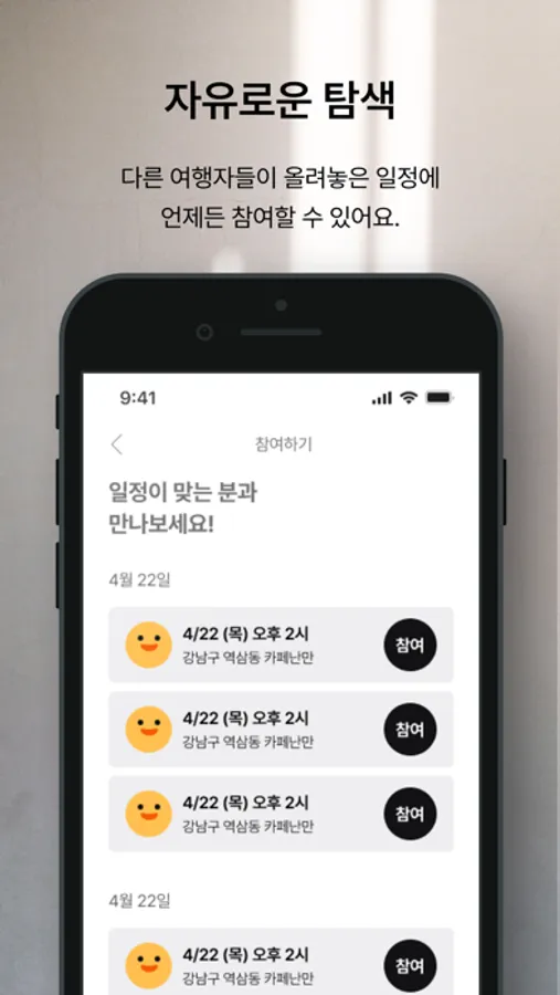 우리의 여행을 더욱 특별하게 만드는 것은 여행지에서 우연히 만나는 낯선 이들과의 추억이에요. 런던에서 파리로 가는 유로스타 안에서, 숙소 앞 아침마다 가는 카페에서 우연히 만난 완벽한 타인과 이야기할 때 선입견이나 고정관념 없이 편하게 나의 이야기를 할 수 있고, 그 안에서 새로운 인사이트를 얻게 되는 경우도 있어요. 그런데 그 경험을 서울 한복판에서도 할 수 있다면 어떨까요?