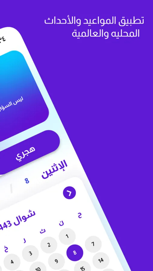 An application that serves individuals integrated to include a number of features such as scheduling personal and public tasks, a calendar of international events and days as well as alerts, as well as local events in Saudi Arabia, and additional services such as date conversion, age account and others.