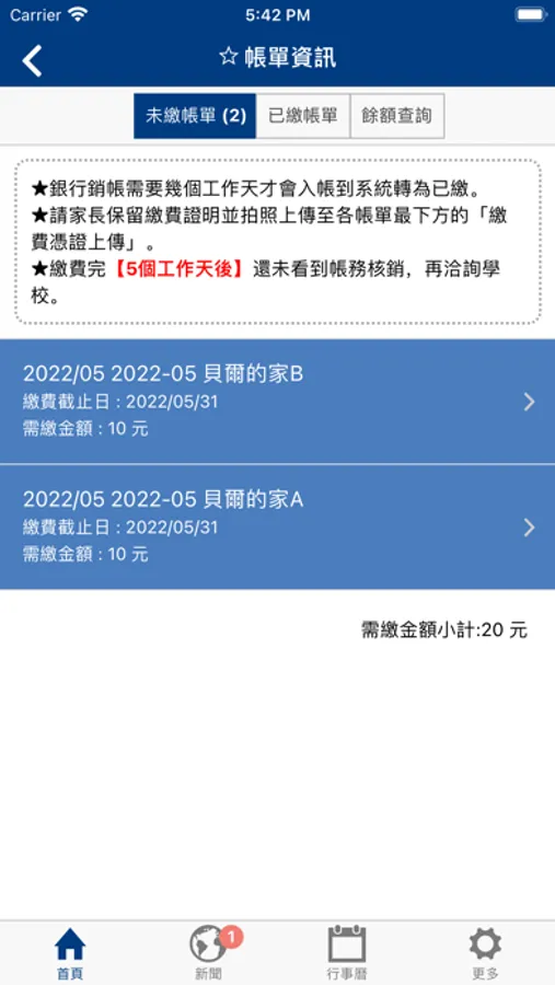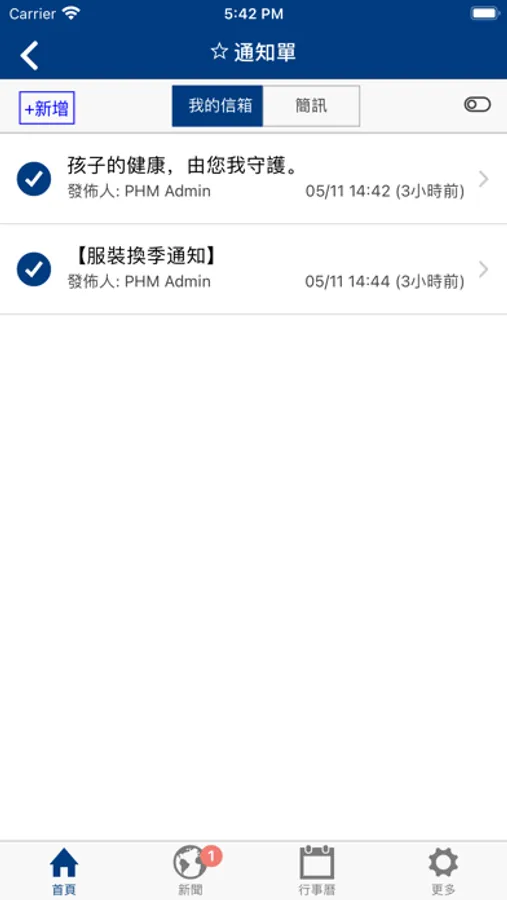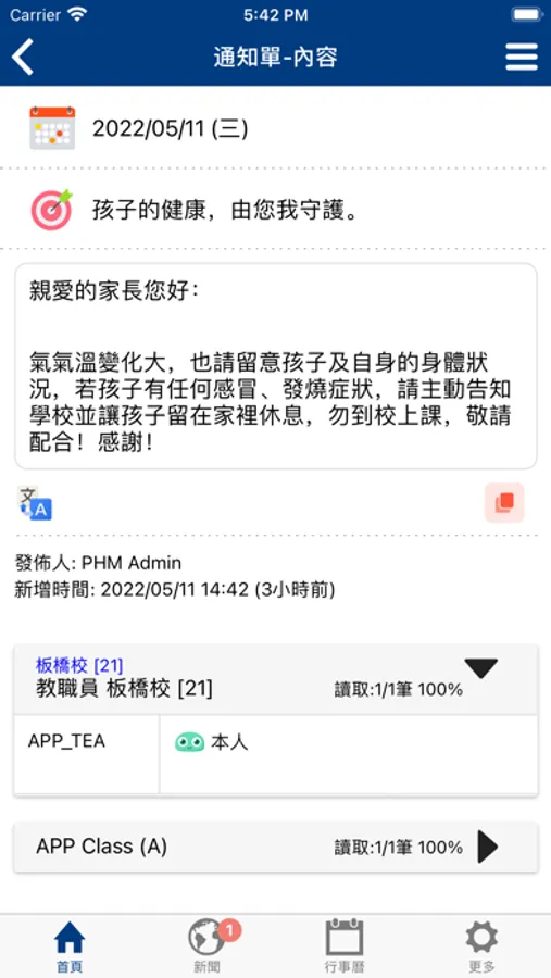 2. 班級通知單:接收班級教師或學校發送的訊息。