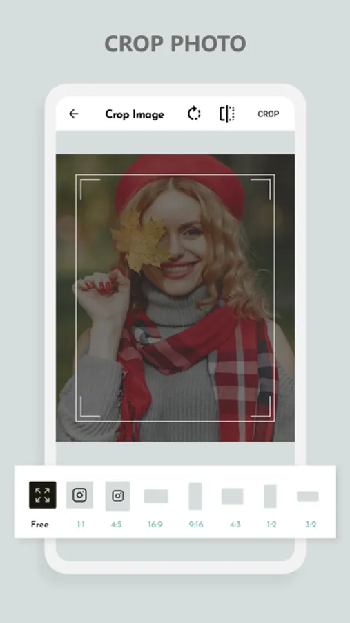 • Crop Your Photo in 1:1, 4:5, 16:9, 9:16, 4:3, 1:2, 2:3, 3:2, 3:4 Ratio.