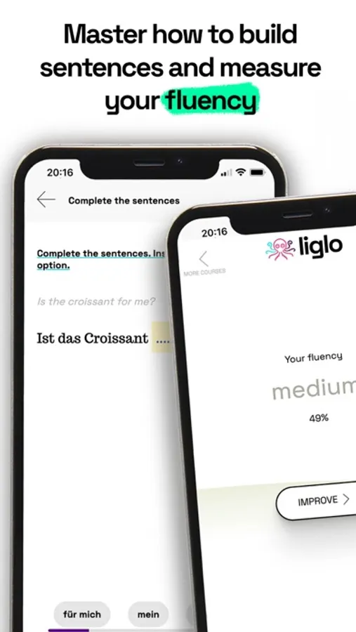With Liglo you'll learn sentences, expressions and dialogues from common and everyday situations. At the same time, you'll expand your vocabulary and learn the most important rules of grammar. You'll be surprised how quickly you'll speak the new language.