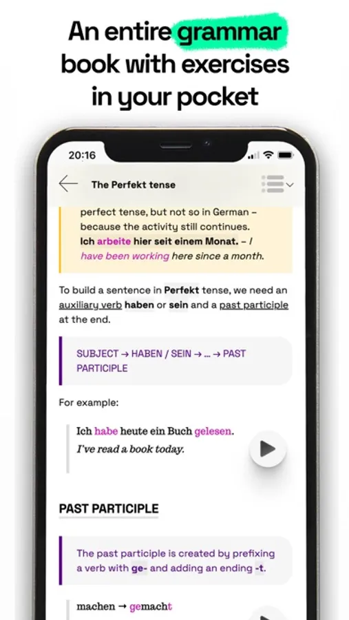 Many courses make grammar look like quantum physics. Save yourself the frustration: the explanations in Liglo are simple and focus on the essentials. Assimilate the rules by solving interesting exercises: arranging, grouping, writing, completing and linking.