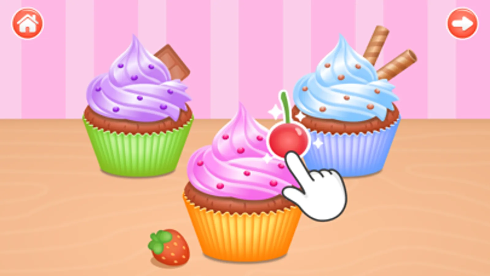 Almost each kid got a sweet tooth. In our application, we provide an opportunity for kids to learn how to make their own interesting mini-cakes and colorful cupcakes. Make a biscuit, bake four cakes in special molds and create your own unique set of interesting cupcakes by decorating the cakes with delicate cream, berries and fruits.