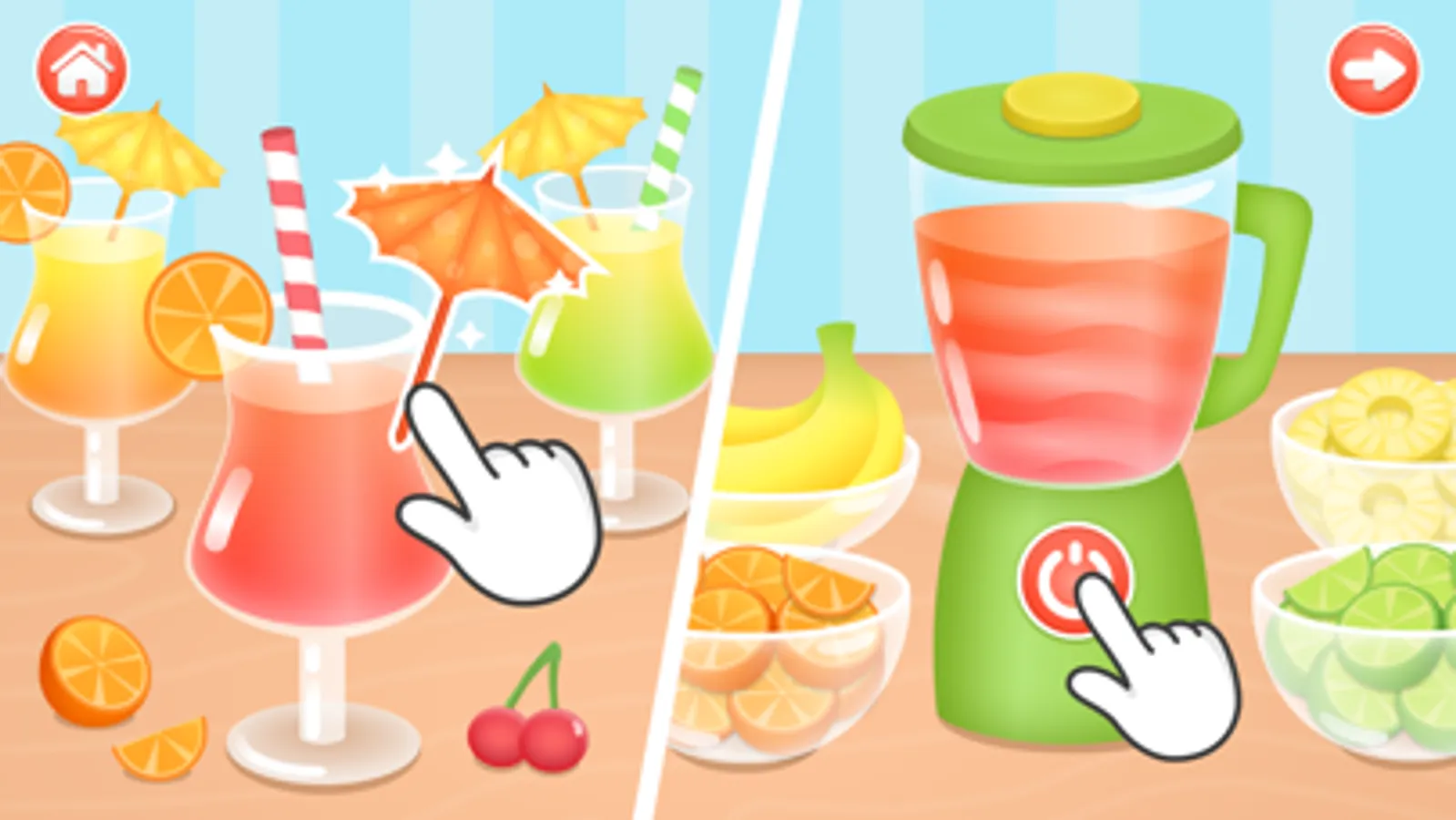 Nothing is more refreshing on a hot day than a sip of a delicious cold cocktail! Follow the recipe, use the necessary cooking tools and create delicious works of art. In our application, children will be able to learn how to prepare various juices and milkshakes, and then treat their parents to them in real life.