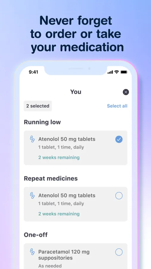 Get a medication reminder with our medicine tracker and know when it's time to order a repeat prescription.