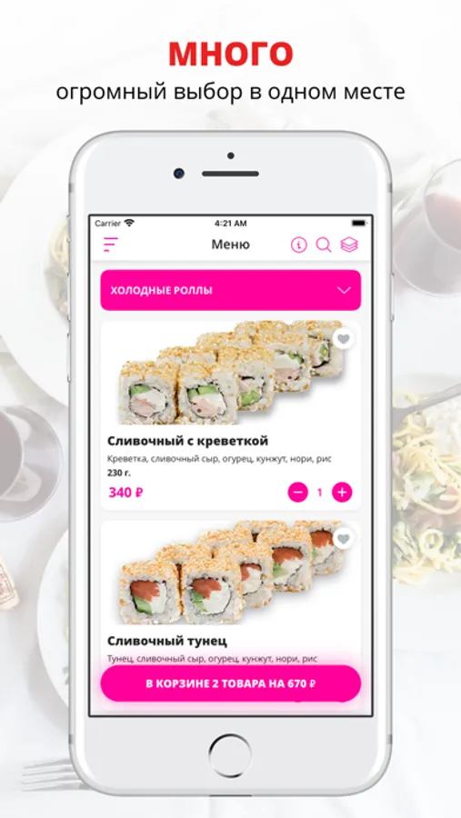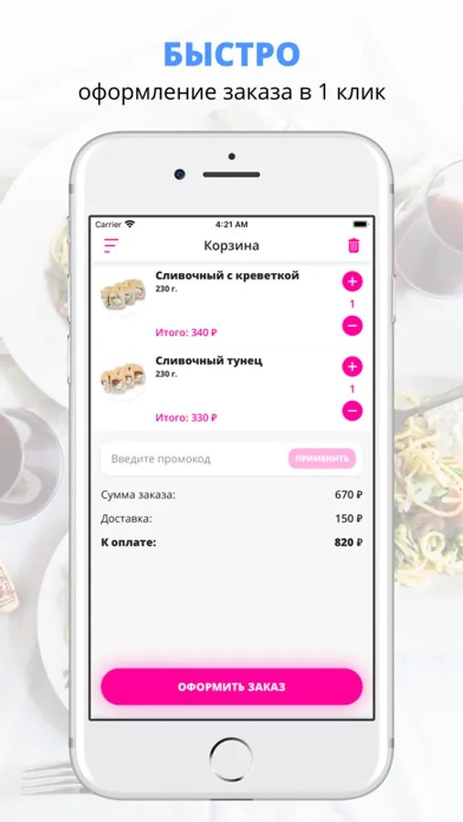 Скачивайте наше приложение, оформляйте заказ и наслаждайтесь любимой едой, где бы Вы ни были! Приятного аппетита!