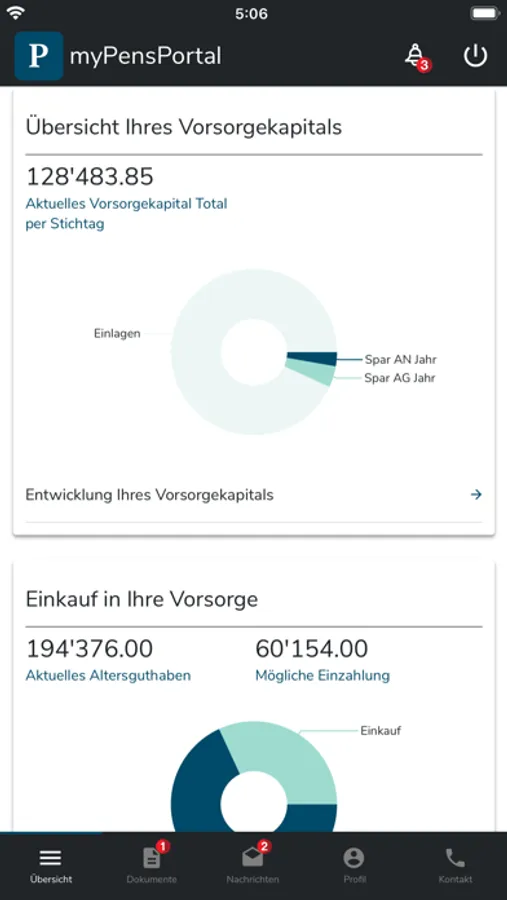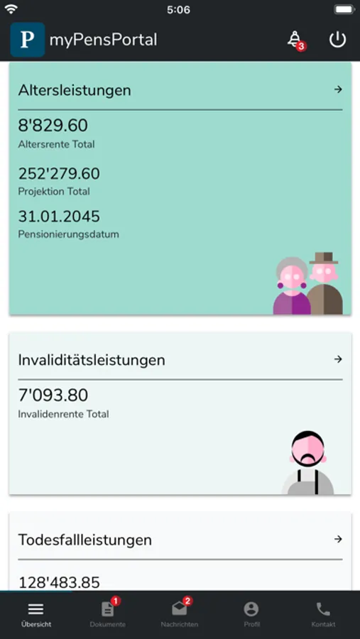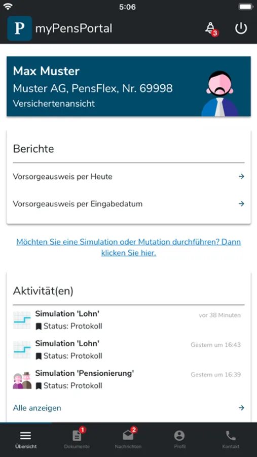 Pension provision made easy! View and update your personal pension data easily and conveniently from home. Communicate with us directly via a secure channel. Use pension tools and calculate effects in real time.