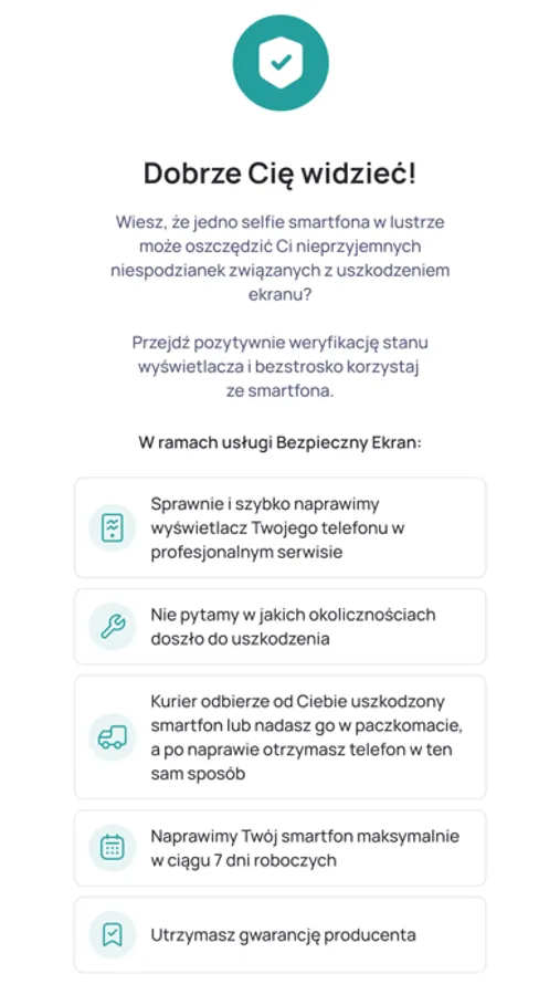 1. Pobierz aplikację Bezpieczny Ekran na smartfon, który chcesz objąć usługą. Pamiętaj, że smartfon nie może być uszkodzony!