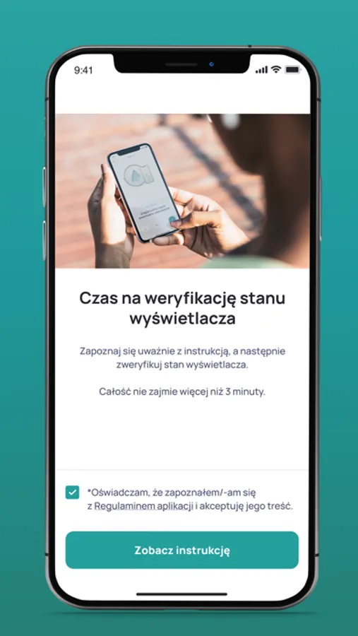 2. Zweryfikuj stan wyświetlacza smartfona zgodnie z instrukcją zamieszczoną w aplikacji.