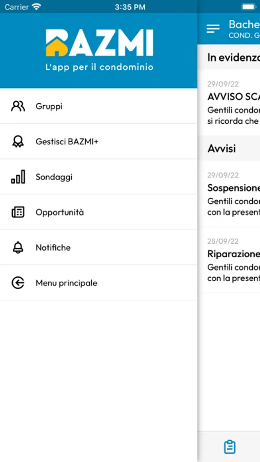 BAZMI mette a disposizione tutte le informazioni in tempo reale inviando le notifiche sul dispositivo mobile (tablet o smartphone) del condòmino.