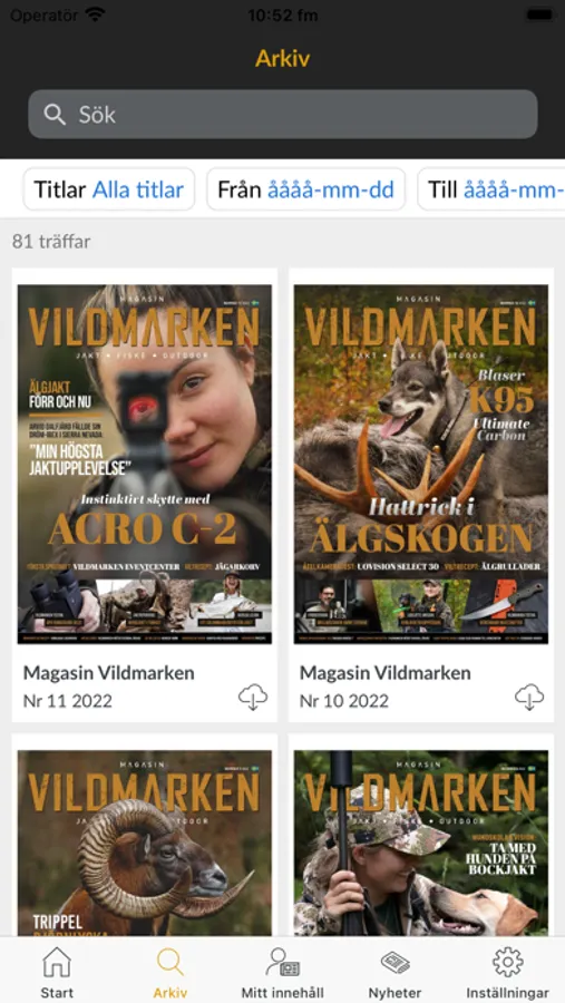 I VILDMARKEN-appen kan du i ett modernt och bekvämt format läsa våra digitala magasin, men även ta del av aktuella nyheter inom jakt, fiske och friluftsliv.