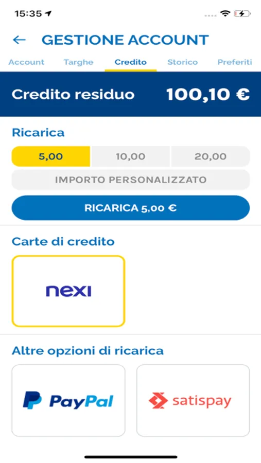Dal tuo profilo puoi verificare il credito e ogni tua sosta nel dettaglio.