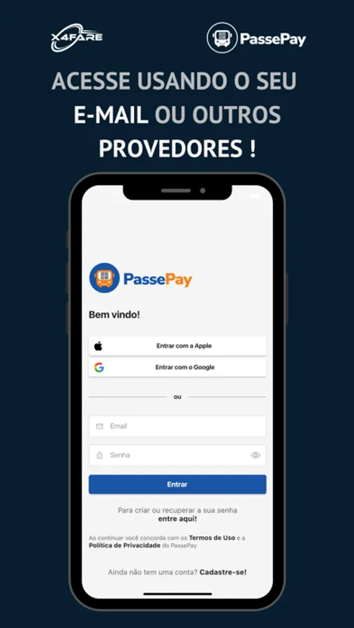 LOGIN COM O SEU E-MAIL OU E-MAIL DA APPLE