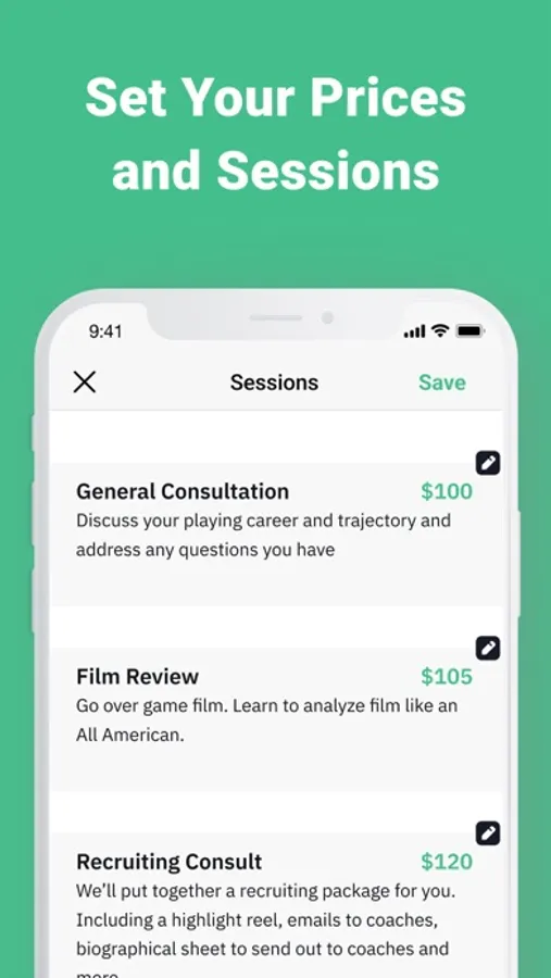 You set your availability and your price. Schedule a meeting with a young athlete and discuss best practices for recruiting and watch film with them.