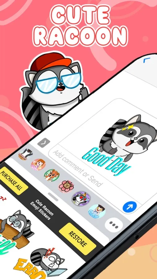 Cute raccoon emoji stickers for your daily chat and communication on your iPhone, iPad and others.