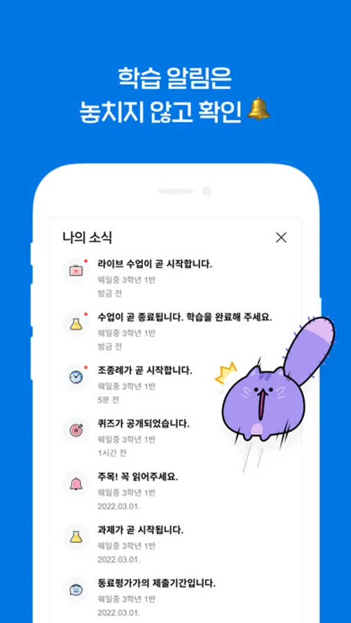 학생은 선생님이 만든 다양한 수업을 간편하게 참여할 수 있습니다.