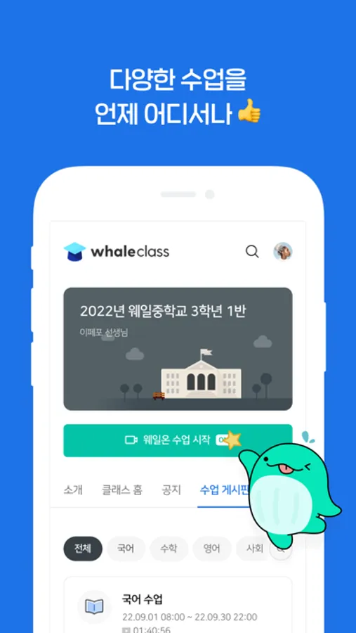 온라인 조종례부터, 수업, 퀴즈, 과제, 웨일온으로 쌍방향 수업까지