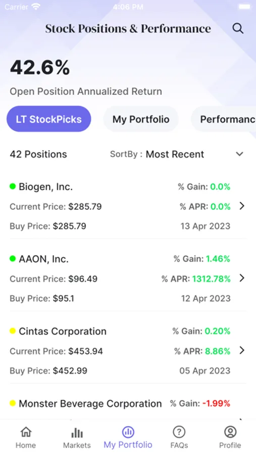 The stocks listed in this Model Portfolio have been very consistent at producing average returns greater than 50%/year. When a stock is identified as a "sell", it means to exit the position at market open the next day. Any losses on exited positions are kept small while the stocks maintained in this Model Portfolio are allowed to grow-and-grow. New money is added to any of the current positions, at your discretion.