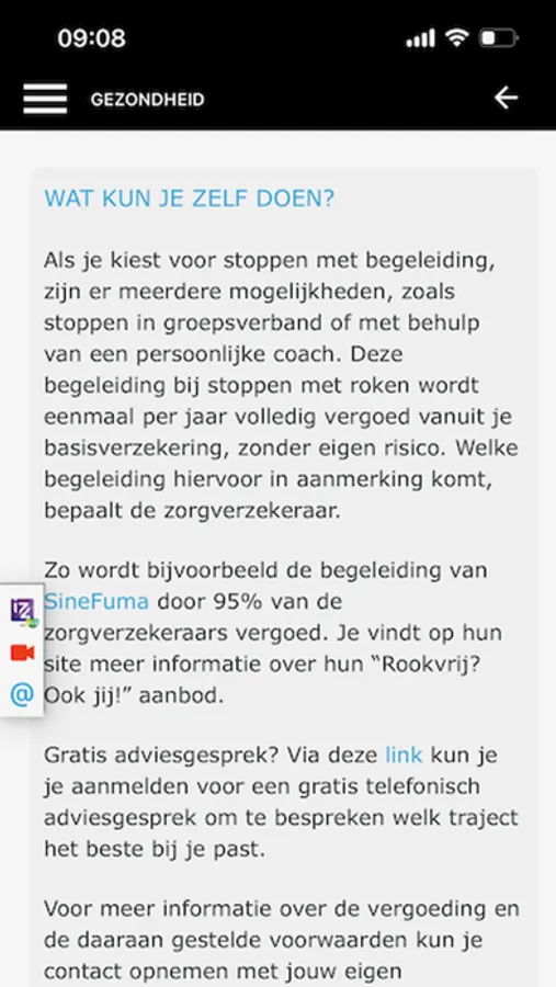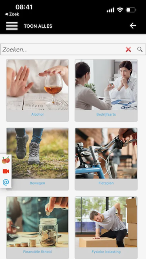 De app geeft je informatie op het gebied van allerlei relevante thema’s volgens de indeling: