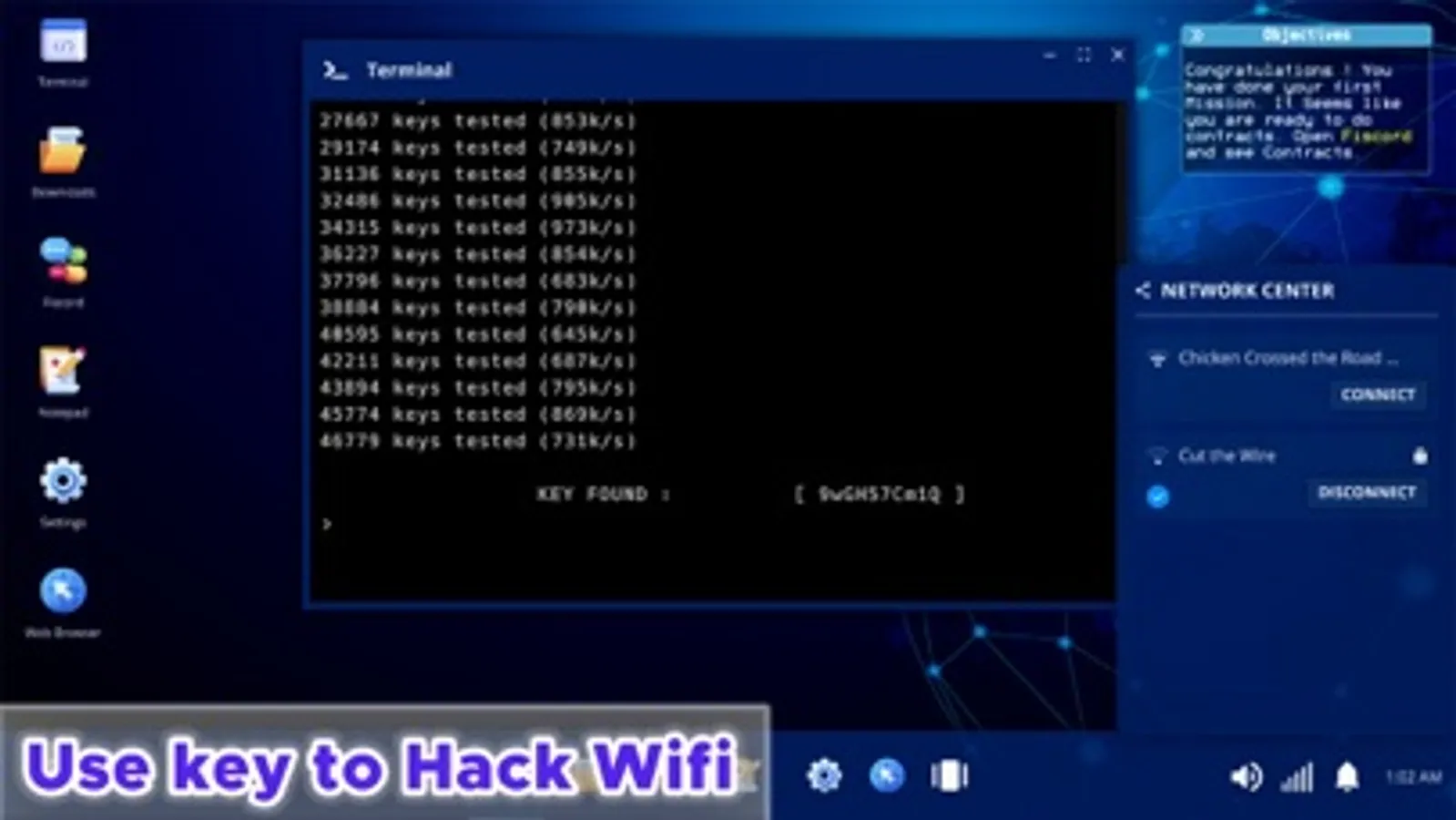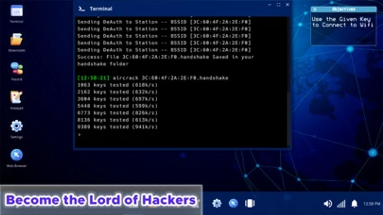 Do you want to rule the world of hackers? Want to become a hacker and build your online reputation to the top by discovering a simplified and enjoyable version of real-life hacking methods. Hacker in this game is an enthusiastic and skillful computer programmer or user. You won't do anything criminal in this game. Complete contracts, buy new programs, upgrade your computer, crack wifi networks and infiltrate people's or companies' online systems. Here you have to stay in the role of a hacker and move up the career ladder of hackers in the world. Learn new technologies, and conduct various hacks. It does not harm or break in wireless networks. But it is an awesome tool to impress your friends and with whom you can have fun. It makes you look like a competent pirate and a technical genius.