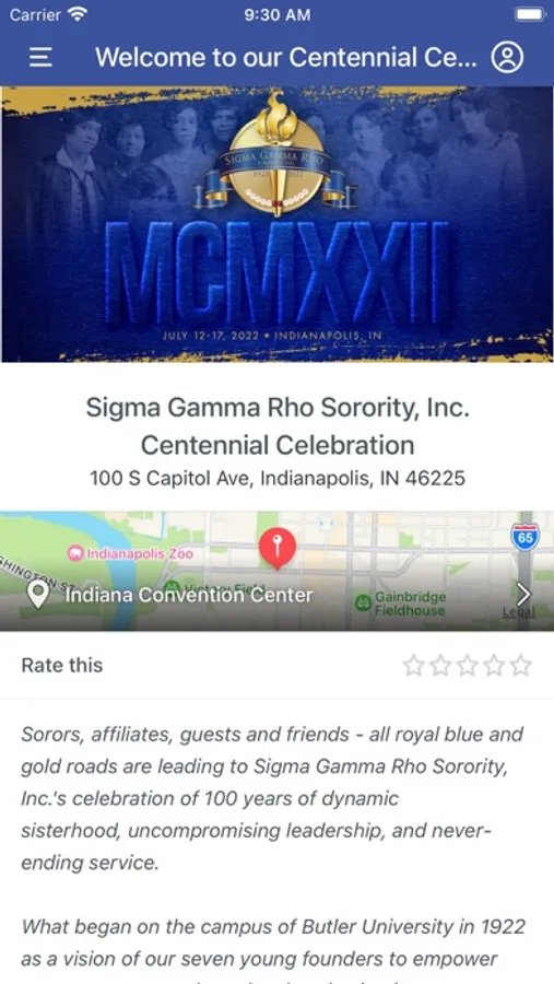 The Sigma Gamma Rho Sorority, Inc. Centennial Celebration app lets you manage your experience before, during and after the event.  Download the mobile event app to: