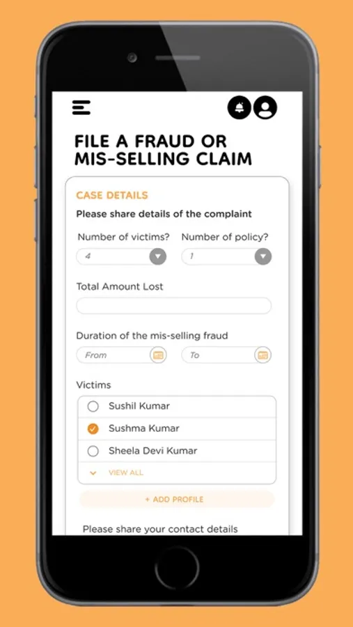 Our App enables any aggrieved user to submit a mis-selling complaint by answering a few objective questions and receive an instant acceptance.